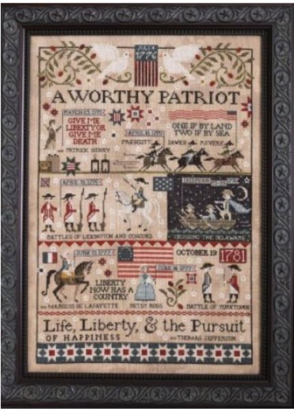 Plum Street Sampler is always a hit but most all agree that The Worthy Patriot is best in show - even mutual designers. I have seen some fairly pricey kits for the design, hand dyed fabric and threads. I have on order the fabric and threads but to save money, think of using Raw Linen and all DMC threads. I asked Paulette Stewart about using Raw Linen and she responded "perfect". It is well priced too! She has about eight other designs to review but do check out her Freedom Flock (from her stack series). Both of these designs are perfect for America 250 Stitching.