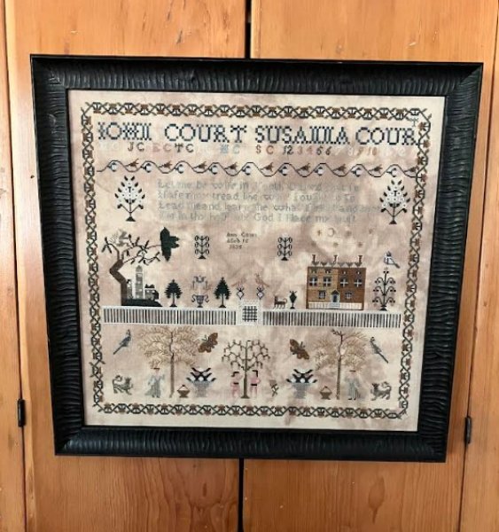 Pre-Order! Please order items you need sooner separately from this item as your overall order will not ship until this item is in stock. Ann Court 1835 is the title of this cross stitch pattern from Chessie and Me that is stitched with Classic Colorworks (Black Coffee, Blacksmith Blue, Blue Corn, Erin Go Emerald, Green Onion, Hazelnut, Hickory Sticks, Jakey Brown, Little House Brown, Muddy Puddle, Pine Needles, Rain Shower, Roasted Chestnut and Shabby Sheep).