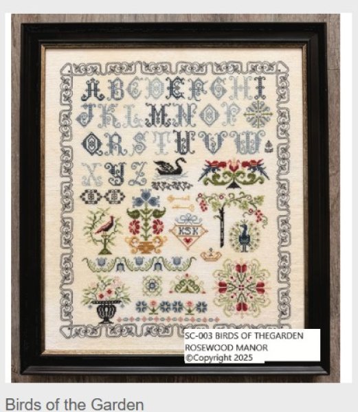 Pre-Order! This item will be released during the Nashville Wholesale Market and will ship by mid to late March. Please order those items you need sooner separately from this item. Birds Of The Garden is the title of this cross stitch pattern from Rosewood Manor.