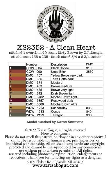 A Clean Heart is the title of this cross stitch pattern from Teresa Kogut.