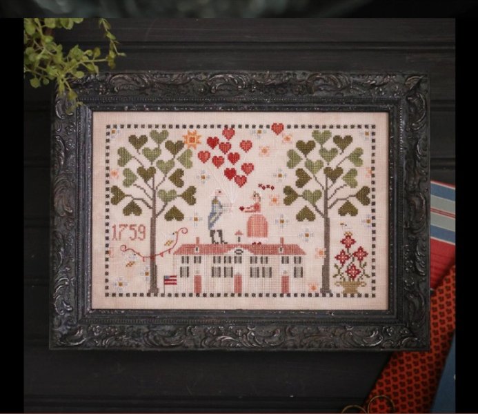 Pre-Order! This is a Nashville Wholesale Market release that will not ship until mid-late March so please order those items you need sooner separately from this item. George Loves Martha is the title of this cross stitch pattern that is stitched with Classic Colorworks (Rose Petal, Black Coffee, Pine Needles, Weeping Willow, Cherry Cobbler, Jakey Brown), Weeks Dye Works (Putty, Olive Branch, Tin Roof, Terrapin), Gentle Art Sampler threads (Antique Rose, Oatmeal) and DMC threads.