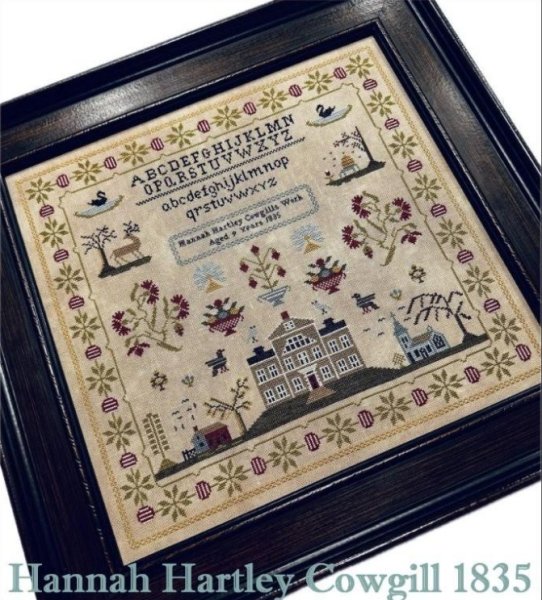 Hannah Hartley Cowgill 1835 is the title of this cross stitch pattern that can be stitched with DMC threads.