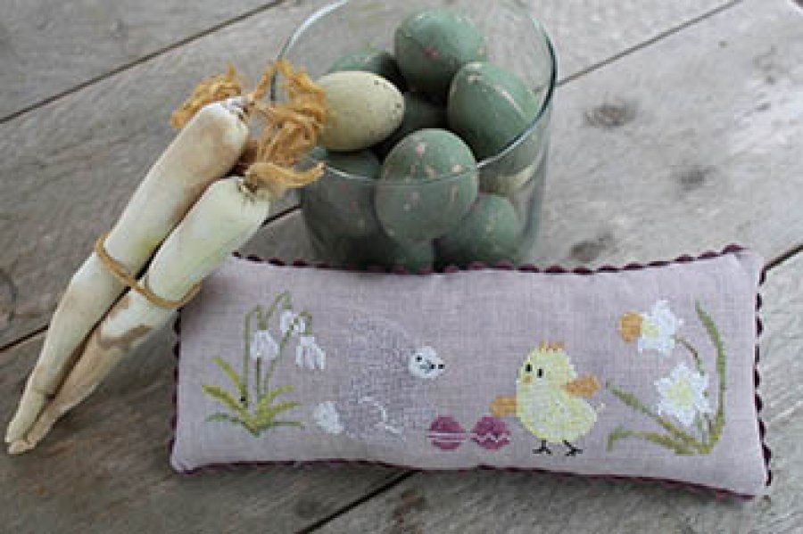 Hippity Hop is the title of this cross stitch pattern from Thistles that you finish as a pillow once stitched or finish as a flat fold or frame it.