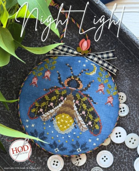 Pre-Order! This item will be released during the Nashville Wholesale Market and will ship mid to late March. Please order those items you need sooner separately from this item. Night Light is the title of this cross stitch pattern from Hands On Design and is stitched with Weeks Dye Works (Blue Suede, Buttercup, Carrot, Charcoal, Chrysanthemum, Cocoa, Dirt Road, Grasshopper, Grits, Hisbiscus, Lichen, Pebble). DMC equivalents provided with the chart as well. Use this link to add the Velaris fabric to your shopping cart.
