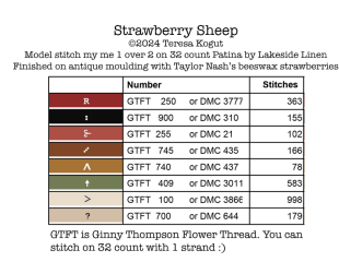 Strawberry Sheep is the title of this cross stitch pattern from Teresa Kogut.