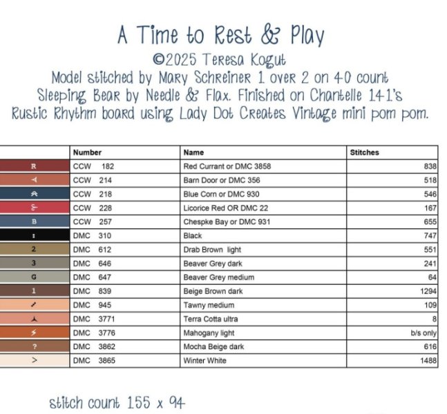 A Time To Rest is the title of this cross stitch pattern from Teresa Kogut.