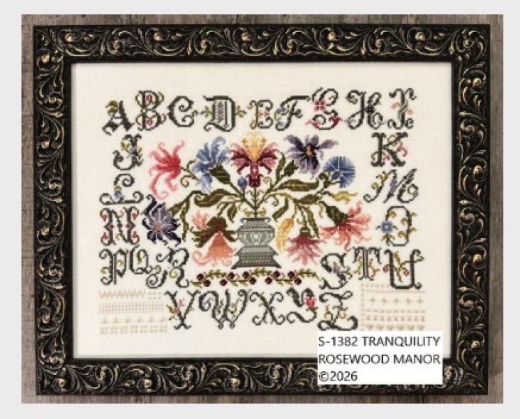 Pre-Order! This item will be released during the Nashville Wholesale Market and will ship by mid to late March. Please order those items you need sooner separately from this item. Tranquility is the title of this cross stitch pattern from Rosewood Manor.